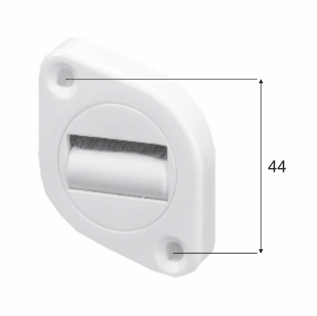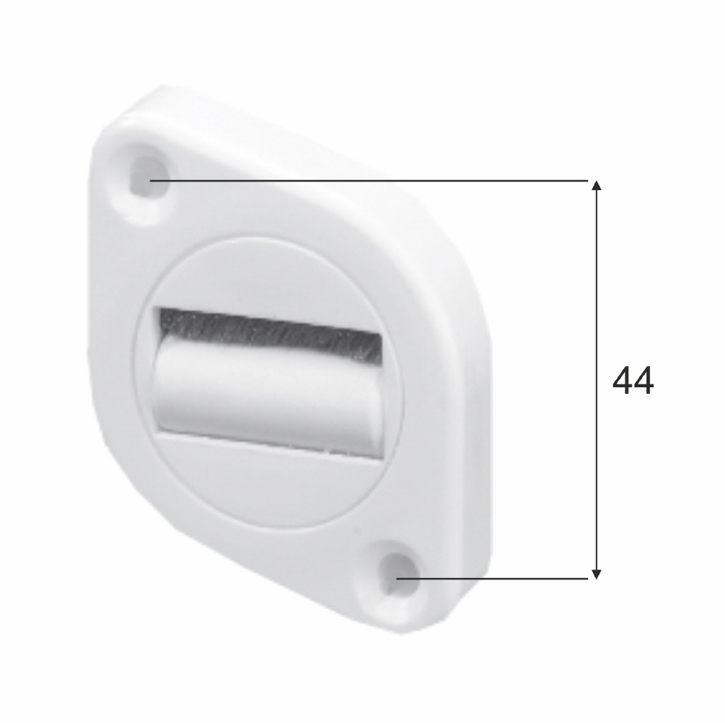 Gurtführung mit schwenkbarem Innenteil, Bürsteneinsatz und nadelgelagerter Leitrolle. Für 18 - 23 mm Gurtband, weiß.