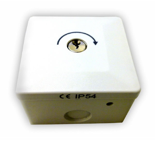 Beidseitig Tast/Rastfunktion, einfach auf Tastfunktion umstellbar, 1-polig mit N- und E-Klemme, Schlüssel in 0-Stellung abziehbar, mit Kunststoffabdeckung.